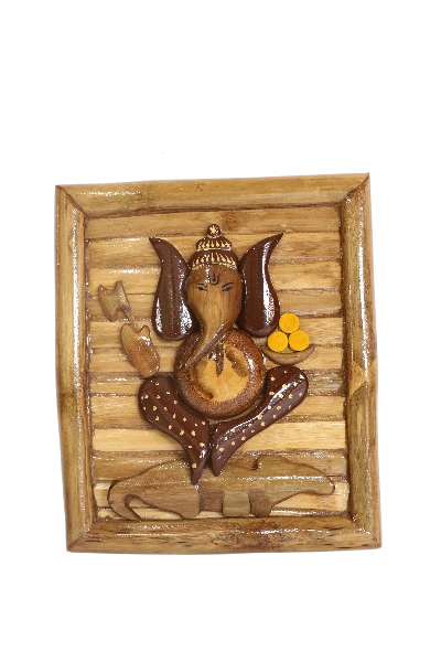 Handcrafted bamboo frame featuring a serene Lord Ganesha design.